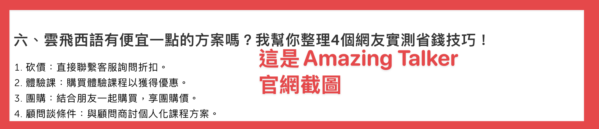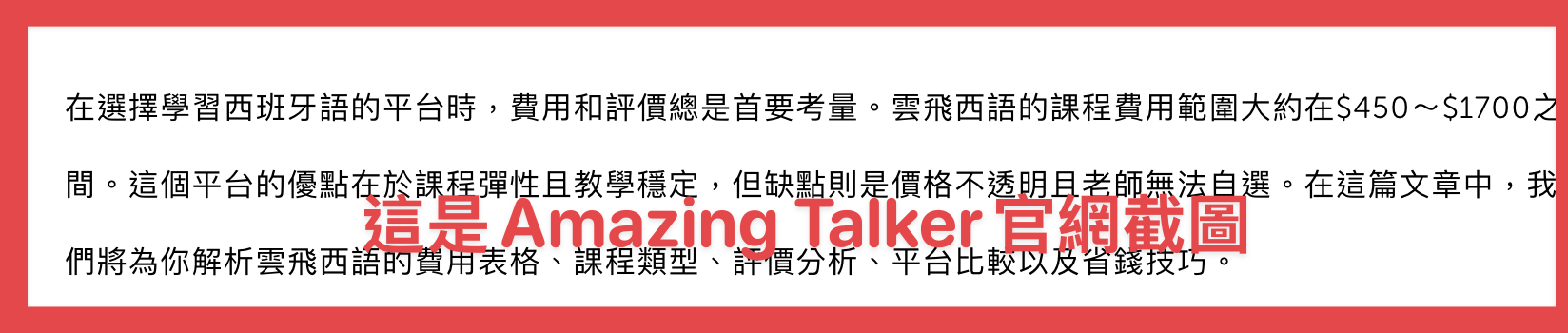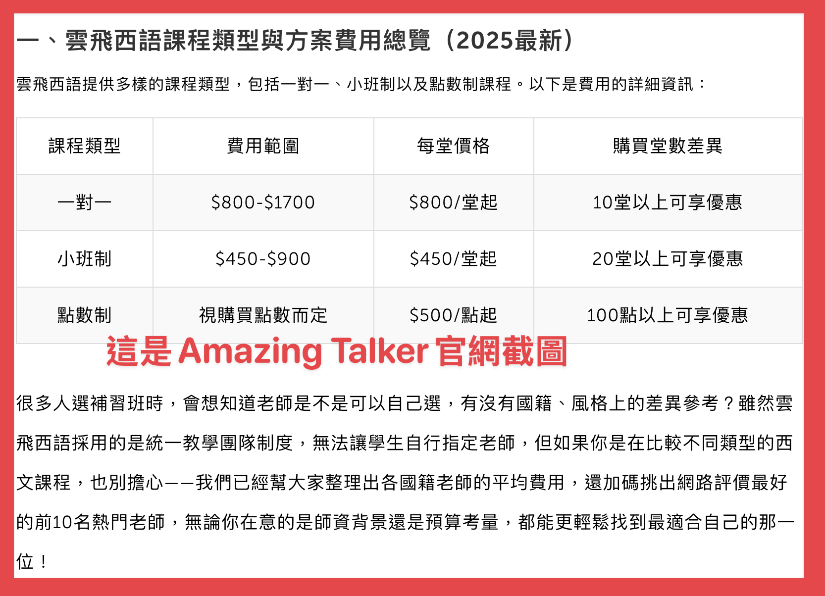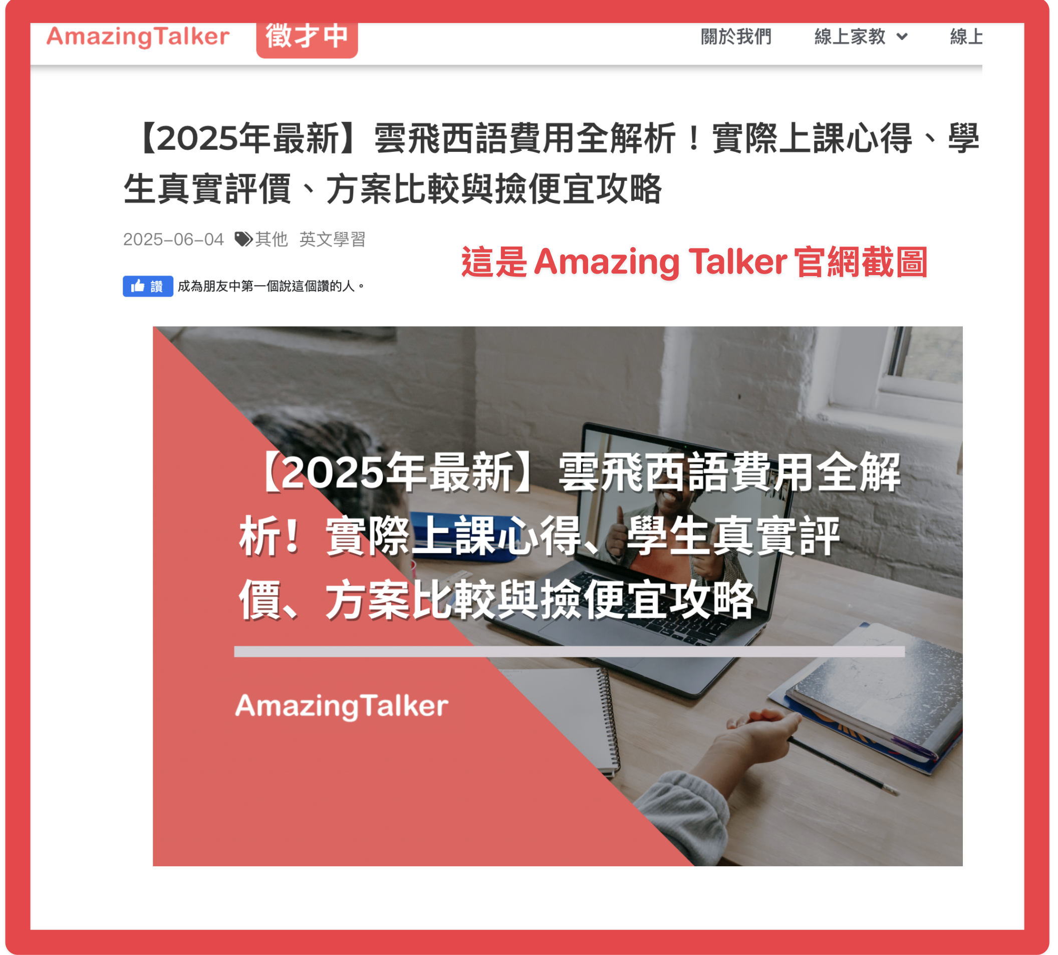一個喜歡學外語的朋友,找課程時無意間在Amazing Talker網頁上看到一篇他們寫的「【2025年最新】雲飛西語費用全解析!實際上課心得、學生真實評價、方案比較與撿便宜攻略」,丟給我看。